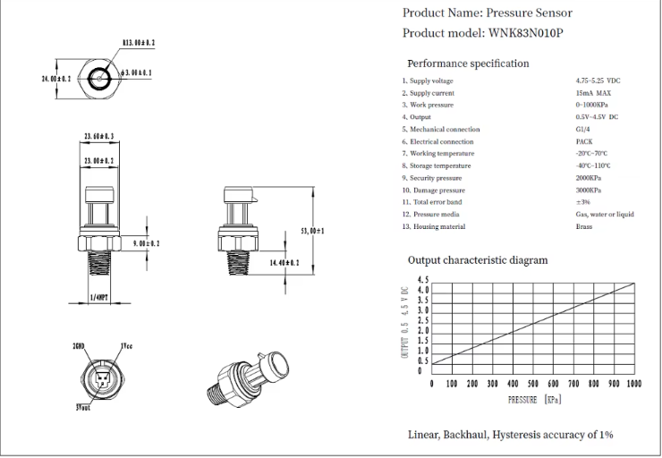 The WNK83ma is a high-performance yet economical brass pressure sensor manufactured by Hefei Wnk Smart Technology Co., Ltd., a professional measurement manufacturer with a history dating back to 2004. As a standard compact pressure transmitter, it integrates an ASIC signal conditioning chip and a dry ceramic capacitive pressure sensor, forming a reliable solution for pressure measurement needs.