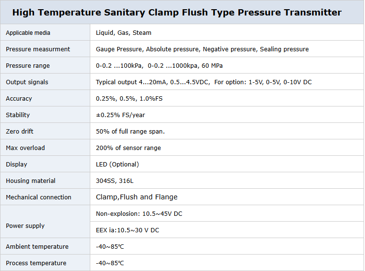 The WNK805 Sanitary Pressure Transmitter is designed with a focus on versatility, accuracy, and durability, featuring: